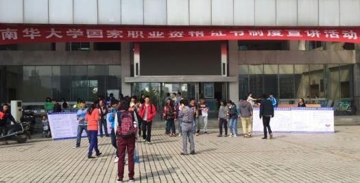 为大力推行国家职业资格证书制度,加快技能人才队伍建设,更好地服务我校学生就业和经济社会发展,贯彻执行湖南省人力资源和社会保障厅职业技能鉴定中心下发的《关于开展2015年国家职业资格证书制度宣讲活动的通知》(湘人社鉴函〔2015〕5号)文件,2015年10月11日上午继续教育学院在乐鱼在线第1教学楼前坪举办了国家职业资格证书制度宣讲活动。活动通过在校园布置宣传横幅、摆放展架、发放相关宣传资料、现场问卷调查方式进行,让学生更多的了解了国家职业资格制度。